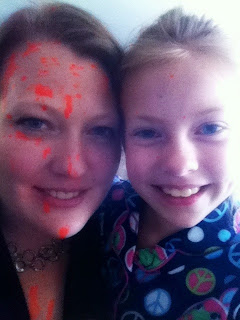 Funny Story - Now it's funny, wasn't hilarious then... haha :) We were up quite early opening all of our gifts, and after that was all cleaned up the girls played with all their new things while I started cooking supper. Mikenna got Adiee a mad scientist kit and could NOT wait to open it herself... She begged me to open it and let her play with it, but I was just so busy so I told her to go play with her other toys and we would do that on a day that we had more time. I took a shower, got dressed, and came back downstairs to keep cooking. I had potatoes on the stove and Mikenna looked at me with her big baby blues and I couldn't say no. We were in the process of making "glow ink" sounds dangerous, doesn't it? My frustration was mounting as I couldn't get the fluorescent orange ink open so I squeezed it HARD. What was I thinking you ask? I will never know... As fast as I pinched the little bottle, the top came shooting off. Bright orange ink exploded all over the kitchen floor, table, counter, and even the ceiling. But it didn't stop there, it was all over my face and some got on Mikenna too. I yelled, "You've got to be kidding me!!" Kasey looked over from the living room (he and his dad were watching A Christmas Story) and proceeded to help me clean it up not even noticing that it was all over my face... When he finally discovered the splatters all over me, did he help me clean it off? Nope. He pointed and laughed. What a sweet guy... Honestly though, it was pretty funny. I was laughing all through clean up too... It wasn't washing off so I took shower #2. When I was coming back down the stairs, I smelled the delicious aroma of burning potatoes. Yep, officially ticked. I was able to save them just fine, but it was quite a scare.